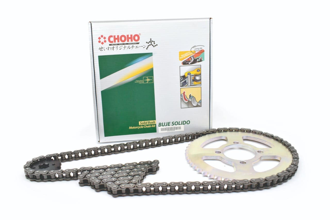Kit de arrastre Choho 428H, compatible con el modelo AKT-150 RTX.Incluye cadena 428H, piñón y catalina de alta calidad para un funcionamiento confiable.Fabricado con materiales resistentes, ideal para prolongar la vida útil de tu moto.Perfecto para reemplazo o mantenimiento, asegurando un ajuste perfecto y un manejo eficiente.