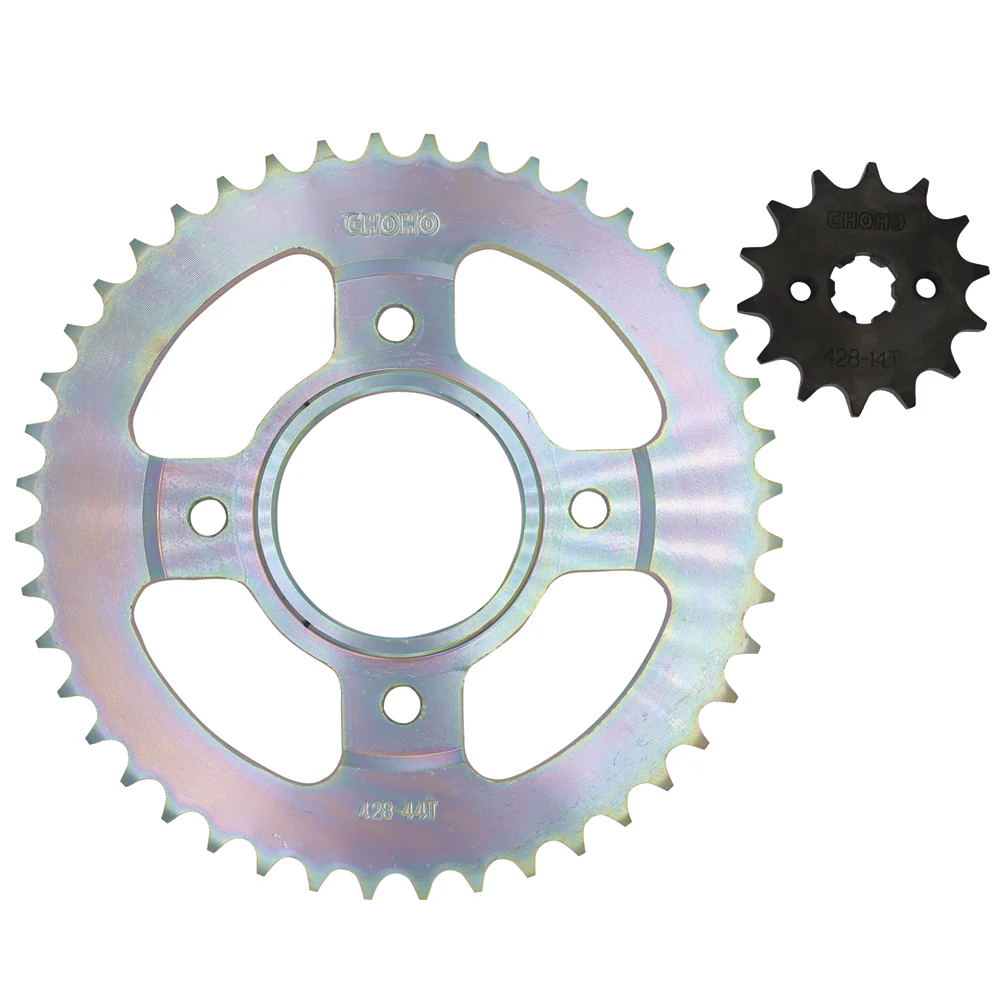 Kit de arrastre diseñado para la moto Eco 100 Deluxe.Incluye cadena tipo 428, optimizada para un funcionamiento suave y resistente.Ideal para mantener el sistema de transmisión en condiciones óptimas.Fabricado por Choho, reconocido por su fiabilidad y calidad en repuestos para motos.