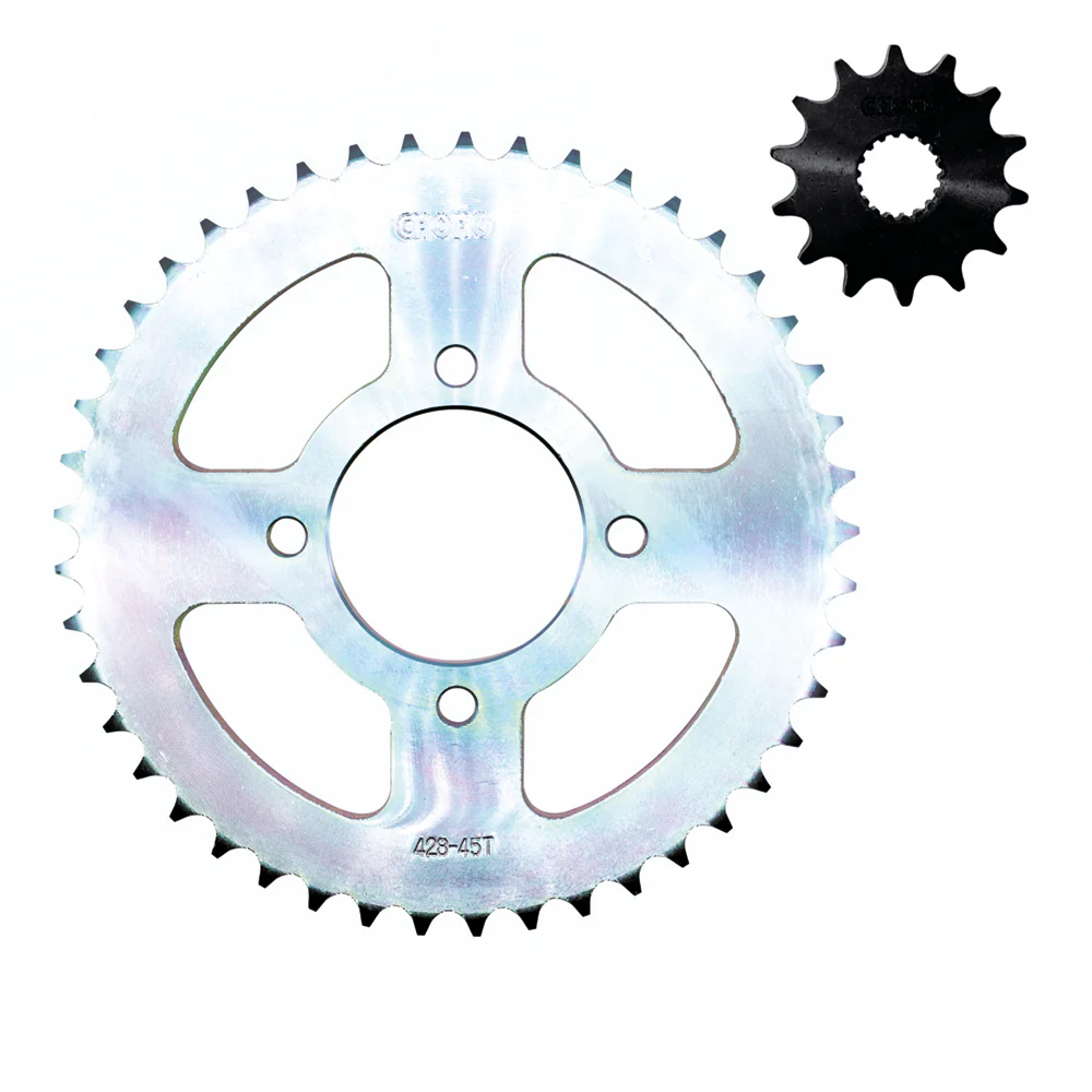 Kit de arrastre compatible con la moto GS-125.Incluye cadena 428H de color dorado, optimizada para un funcionamiento duradero.Diseñado para asegurar un rendimiento estable y eficiente en el sistema de transmisión.Fabricado por Choho, reconocido por su calidad y fiabilidad en repuestos para motos.