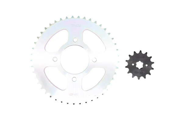 Compatible con la moto TVS Max-125.Incluye cadena tipo 428H de 118 eslabones, conocida por su durabilidad y eficiencia.Ideal para mantener el sistema de transmisión funcionando de manera eficiente y sin inconvenientes.Fabricado por Choho, una marca destacada por la calidad de sus repuestos para motos.