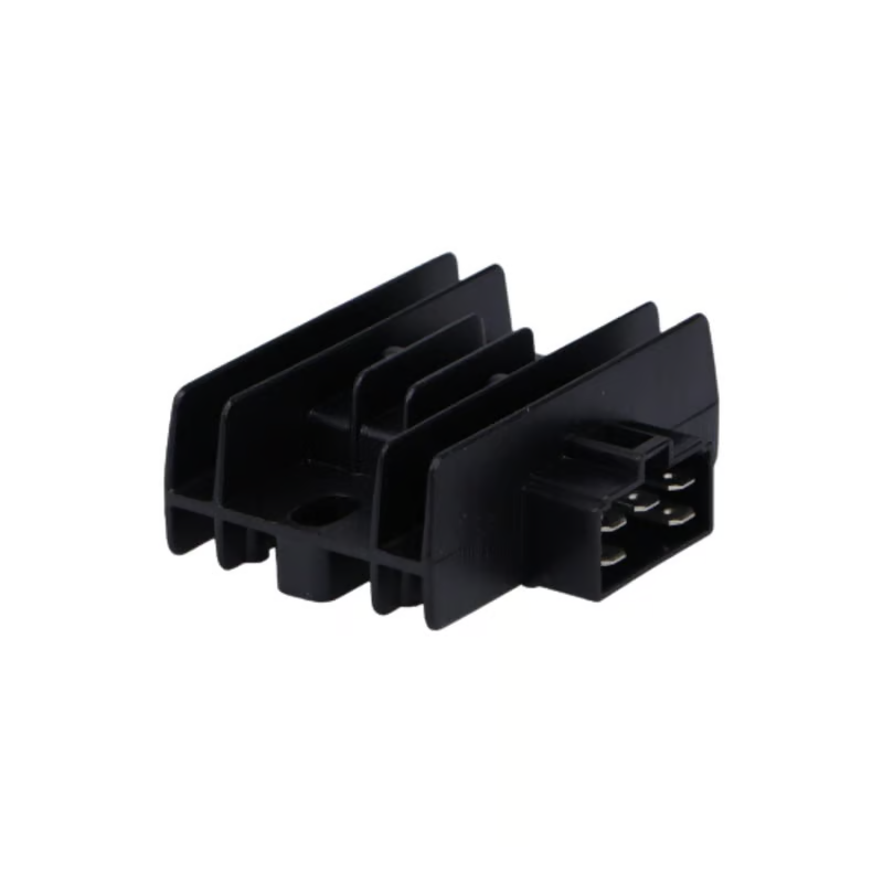 Regulador de corriente de 5 pines compatible con Yamaha Libero-125 y FZ-16 (2013).Fabricado por Partnecol, garantizando calidad y rendimiento confiable.Estabiliza el flujo eléctrico, protegiendo la batería y componentes electrónicos.Construcción robusta para soportar condiciones exigentes y prolongar la vida útil del sistema eléctrico.Ideal para reemplazo o mantenimiento, asegurando un funcionamiento eficiente y seguro.
